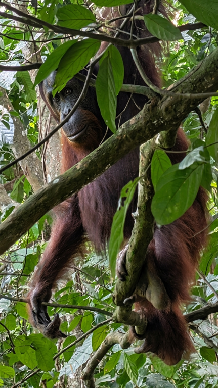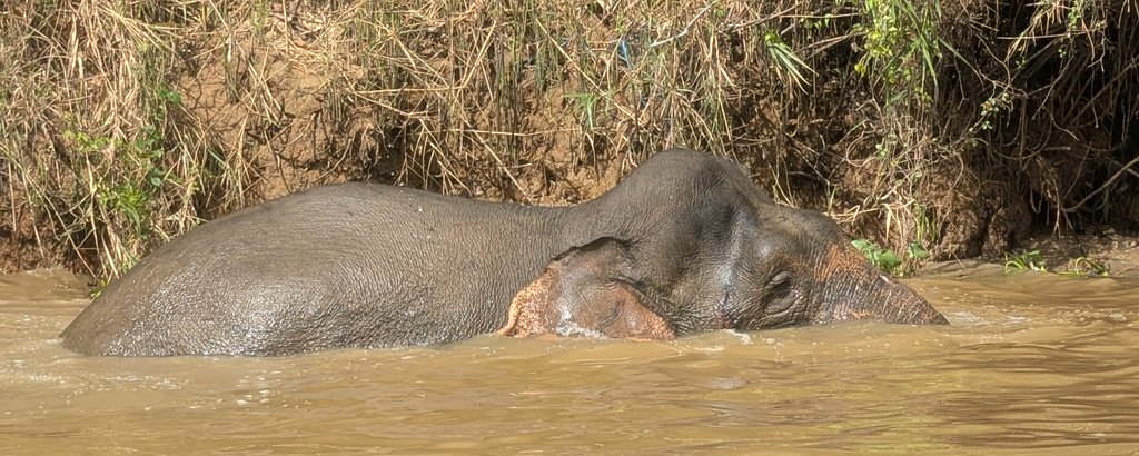 Hoogtepunt was ongetwijfeld een wilde orang-oetan die zomaar ons pad kruiste en akelig dicht nabij kwam waardoor ons hart enkele slagen hoger schakelde. En wat we ook hebben gezien zijn de zogenaamde pygmee olifanten. Wat een misleidende naam overigens. Pygmee olifanten geven mij de indruk dat mocht ik ze tegenkomen in het bos, ik ze met een dikke tak in de hand zou kunnen verjagen. Wat een idee! Die beesten zijn nog steeds kolossaal.