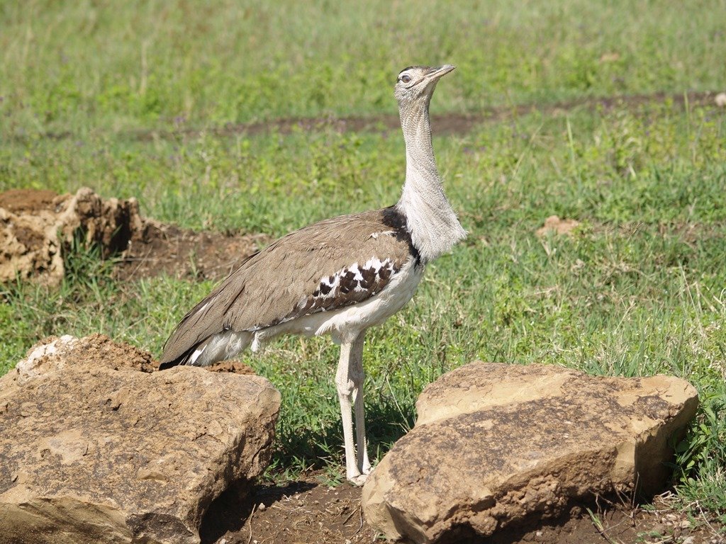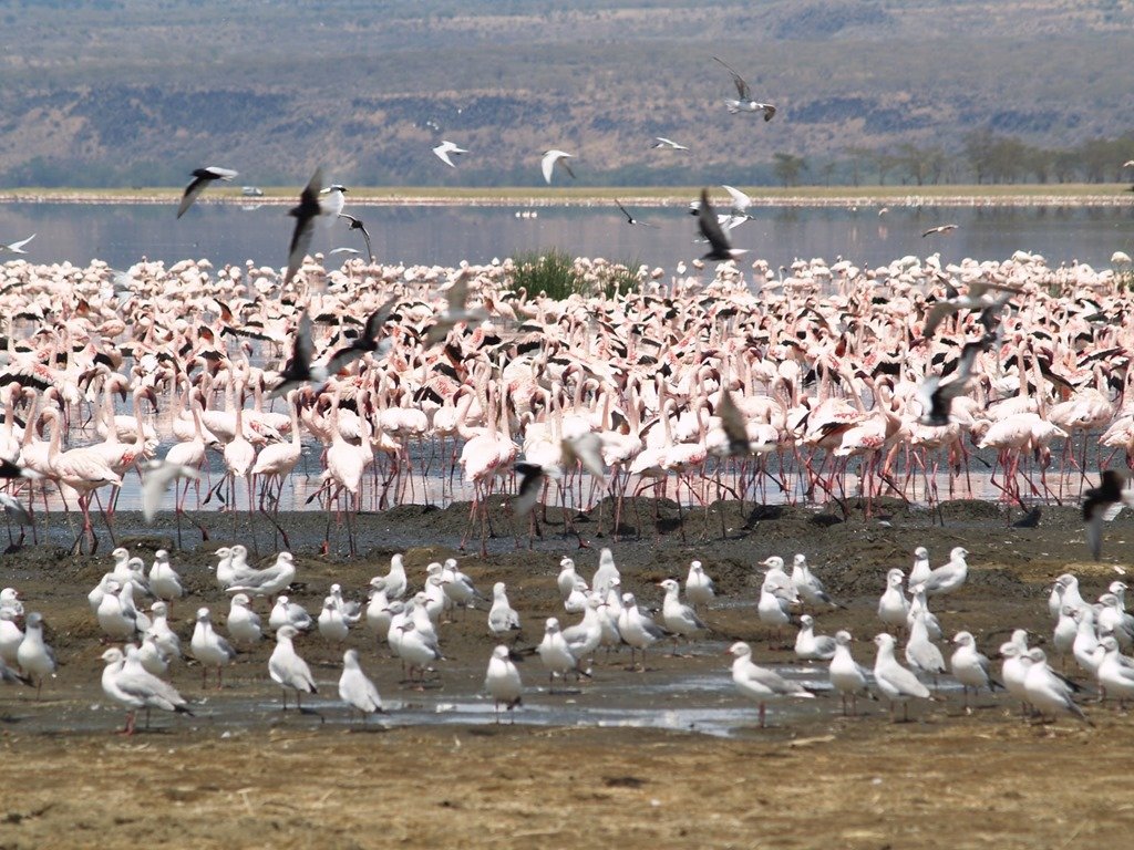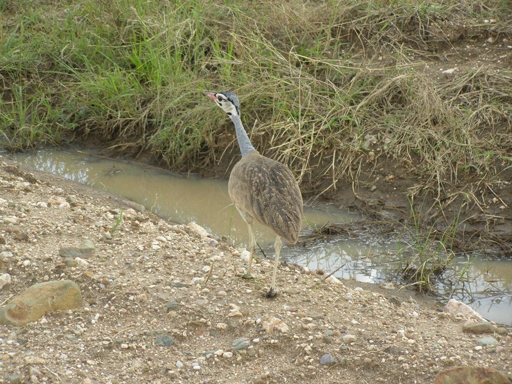 Oeioei! Ik dacht eerst dat je op de hele reis Astrid maar één vogel had laten zien en ik dacht natuurlijk aan een roze flamingo. Maar in Nakuru lopen en vliegen er een paar miljoen rond (heb ik met eigen ogen meermaals mogen bewonderen), dus was ik abuis! Ik heb dan maar verder gelezen en gekeken en vastgesteld dat die onbekende vogel een eupodotis caerulescens moet zijn (= blue korhaan, een kleinere bustard-soort), te herkennen aan de blauw-grijze nek, borst en buik. Deze vogel zou je eerder verwachten meer naar het zuiden van Afrika, maar alhoewel hoofdzakelijk een loopvogel, kan een korhaan, zelfs de grootste soort, ook heel goed vliegen. Bijgevolg kan heel snel “een stukske weg” worden afgelegd.